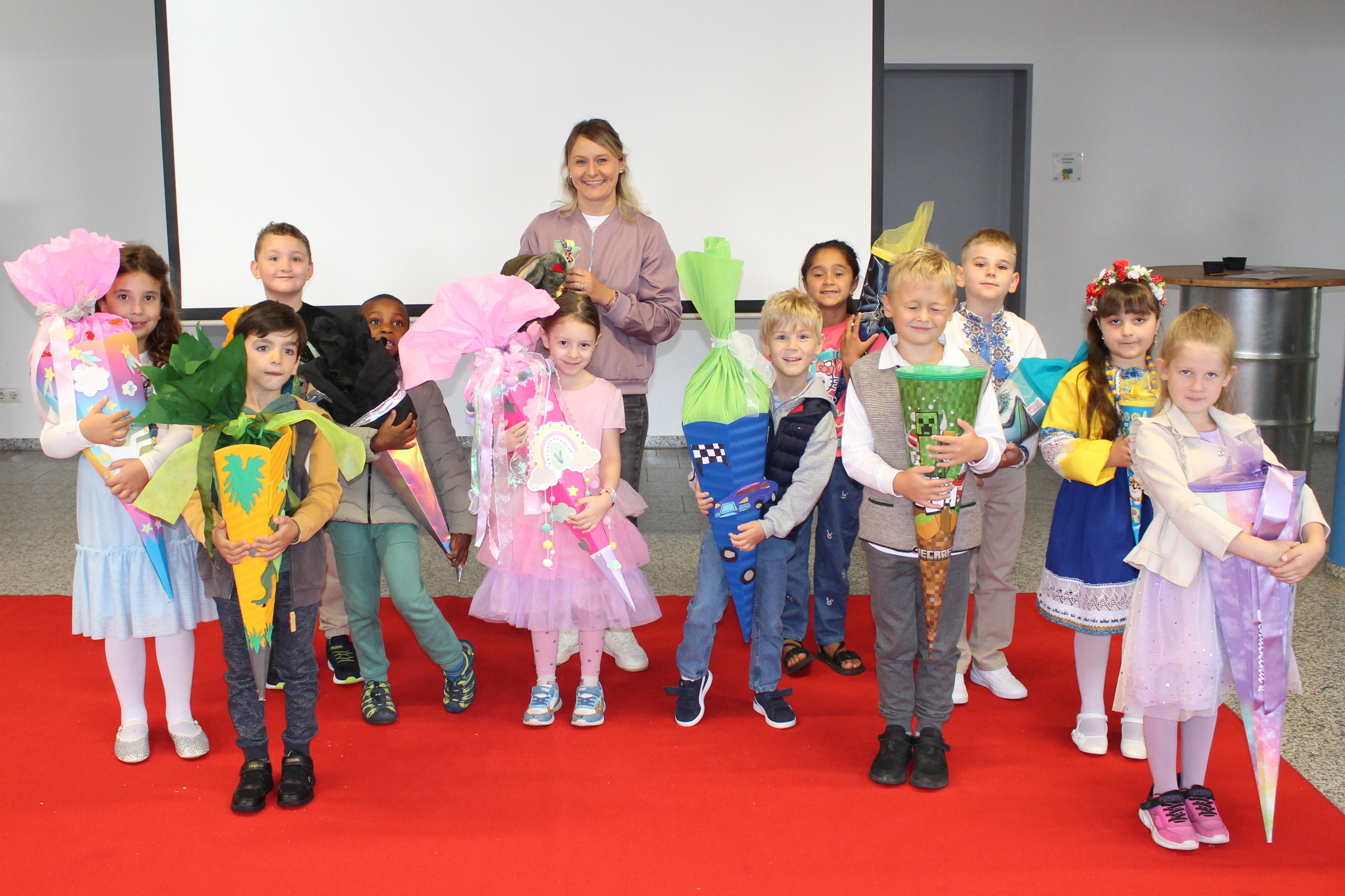 Am Dienstag, den 16. September 2025, war es endlich soweit: Unsere 37 Erstklässler wurden feierlich an unserer Schule eingeschult. Gemeinsam mit ihren Eltern, Großeltern und Verwandten erlebten sie eine fröhliche und bunte Willkommensfeier in der vollbesetzten Aula unserer Schule.