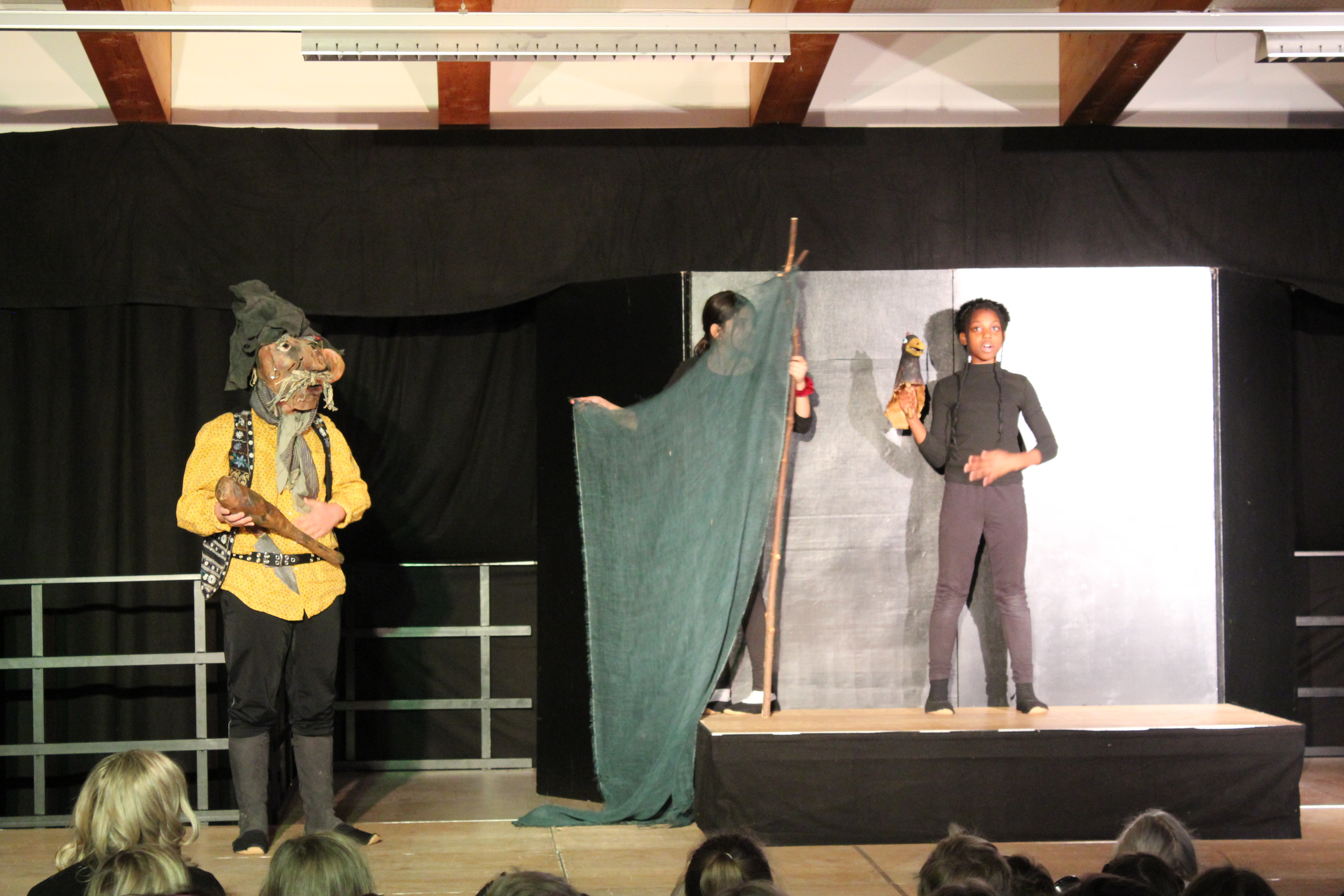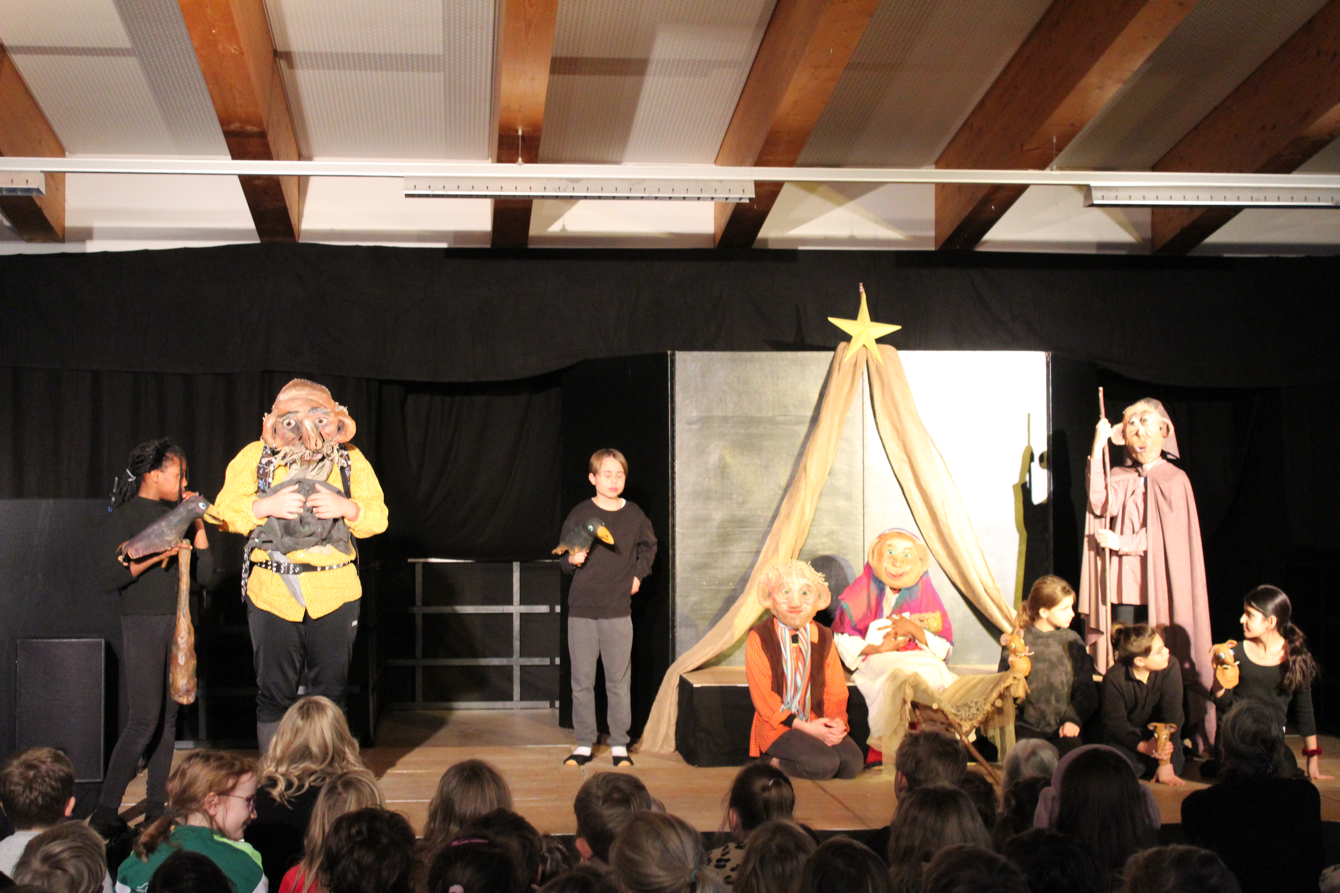 Die Schülerinnen und Schüler zeigten bei den Aufführungen hervorragende schauspielerische Leistungen. Besonders originell war die Erzählweise: Sprechende Krähen führten das Publikum durch die Geschichte. Hervorzuheben sind die tollen Masken, die die Schülerinnen und Schüler bei den Aufführungen trugen.